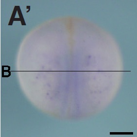 igfbp1 (insulin-like growth factor binding protein 1) gene expression in Xenopus tropicalis embryo, assayed via in situ hybridization, NF stage 20, dorsal view, anterior up. This image is extracted from figure published in: Haramoto Y et al. (2014), Image published in: Haramoto Y et al. (2014) Copyright © 2014. Image reproduced with permission of the Publisher, University of the Basque Country Press.