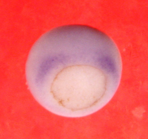 hoxb4 (homeobox B4) gene expression in Xenopus laevis embryo, assayed via in situ hybridization, NF stage 11, vegetal/blastoporal view, dorsal up. Copyright © Patient Lab Image created by: Aldo Ciau-Uitz