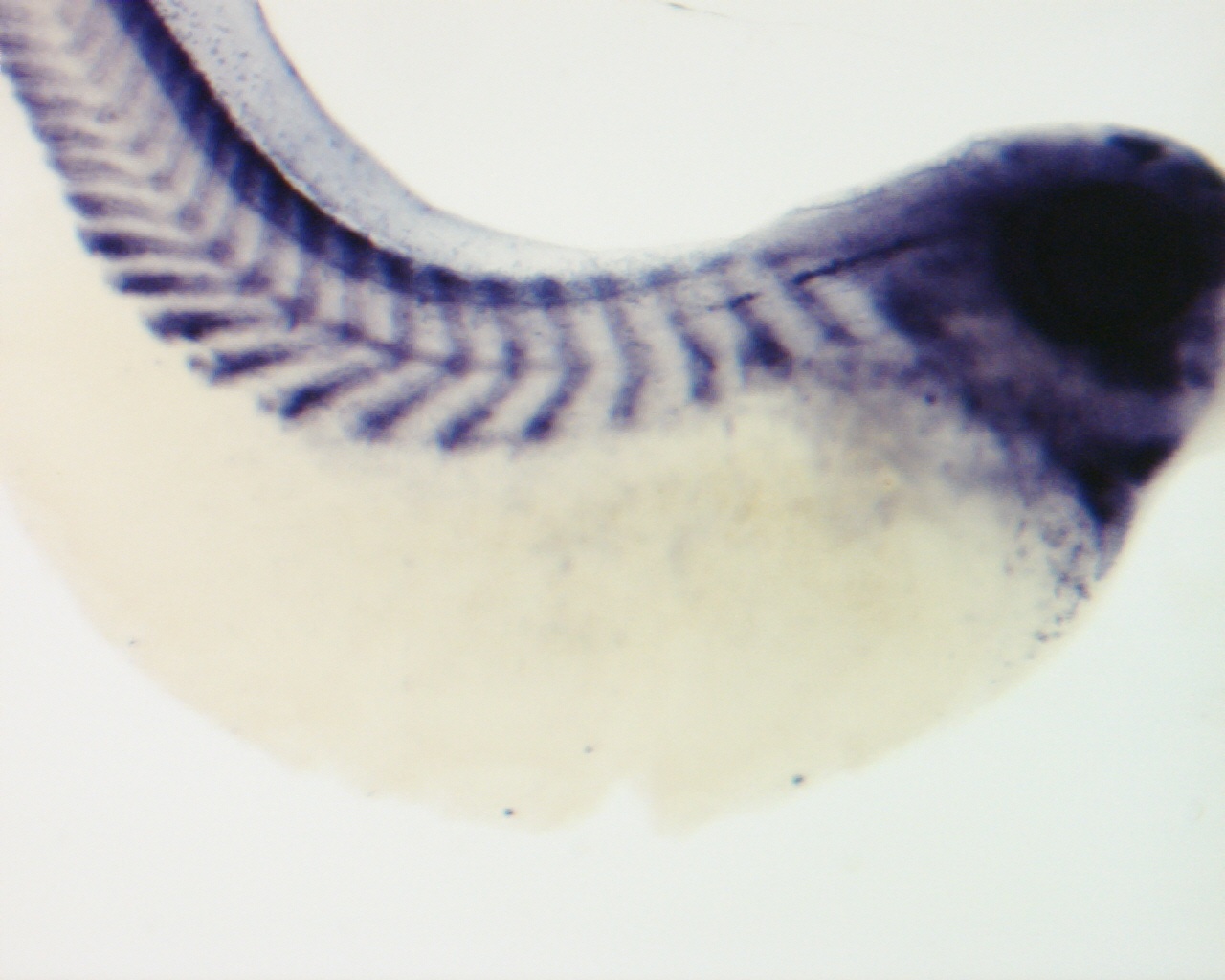 nr4a1 (nuclear receptor subfamily 4, group A, member 1) gene expression in Xenopus laevis embryo, assayed via in situ hybridization, NF stage 39, anterior right, dorsal up. Copyright © Patient Lab Image created by: Aldo Ciau-Uitz