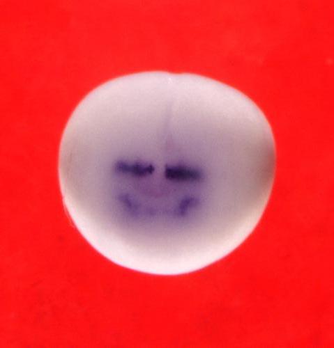 pax5 (paired box 5) gene expression in Xenopus laevis embryo, assayed via in situ hybridization, NF stage 17, anterior view, dorsal up. Copyright © Patient Lab Image created by: Aldo Ciau-Uitz