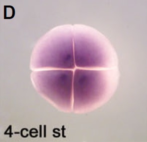 hebp2 (heme binding protein 2) gene expression in Xenopus laevis embryo, assayed via in situ hybridization, NF stage 3, animal view. This image is extracted from figure published in: Pera EM et al. (2005), Image published in: Pera EM et al. (2005) Copyright © 2005. Image reproduced with permission of the Publisher, University of the Basque Country Press.