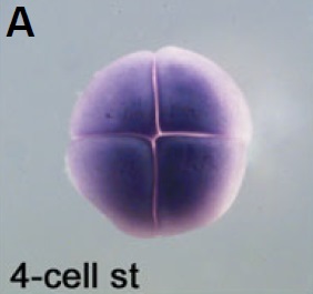 serpine2 (serpin peptidase inhibitor, clade E (nexin, plasminogen activator inhibitor type 1), member 2) gene expression in Xenopus laevis embryo, assayed via in situ hybridization, NF stage 3, animal view. This image is extracted from figure published in: Pera EM et al. (2005), Image published in: Pera EM et al. (2005) Copyright © 2005. Image reproduced with permission of the Publisher, University of the Basque Country Press.