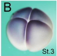 akirin2 (akirin 2) gene expression in Xenopus laevis embryo, assayed via in situ hybridization, NF stage 3, animal pole view. Image published in: Liu X et al. (2017) Copyright © 2017. Image reproduced with permission of the Publisher and the copyright holder. This is an Open Access article distributed under the terms of the Creative Commons Attribution License.