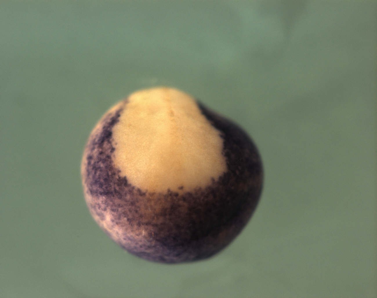 znf750 (zinc finger protein 750) gene expression in Xenopus laevis embryo, assayed via in situ hybridization, NF stage 15, anterior view, dorsal up.