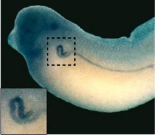 clcnkb (chloride voltage-gated channel Kb) gene expression in X. laevis embryo, NF stage 39, assayed via in situ hybridization, lateral view, anterior left, dorsal up. This image is extracted from figure published in: Cervino AS et al. (2023), Image published in: Cervino AS et al. (2023) © The Author(s) 2023. Creative Commons Attribution license