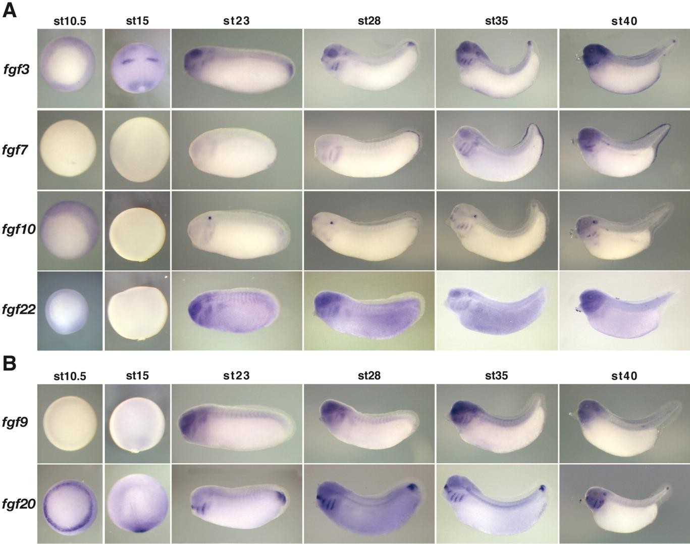 | fgf20 | XFGF-20, xfgf20 | X. tropicalis | Throughout NF stage 15 | mesoderm