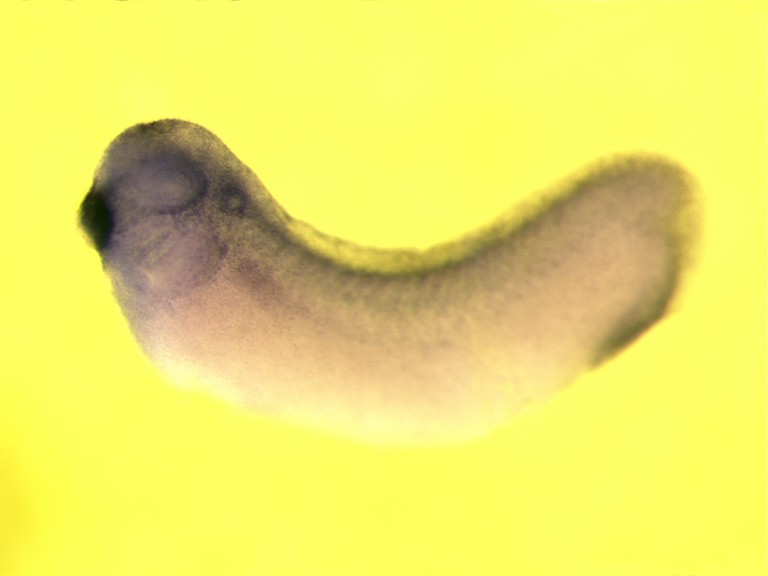 pdcd6ip (programmed cell death 6 interacting protein) expressed in Xenopus laevis embryo via in situ hybridization, NF stage 29 and 30, lateral view, anterior left.