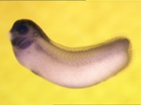 prpf8 < PRP8 pre-mRNA processing factor 8 homolog> gene expression in Xenopus laevis, NF stage 29&30 embryo, in situ hybridization, lateral view, anterior left.