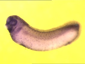 taldo1 (transaldolase 1) gene expression in Xenopus laevis, NF stage 28 embryo, assayed via in situ hybridization, lateral view, anterior left, dorsal up.