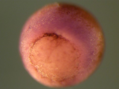 kmt5b (lysine (K)-specific methyltransferase 5B) gene expression in Xenopus tropicalis embryo, assayed via in situ hybridization, NF stage 11, blastoporal view, dorsal up.