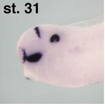 Fig. 4. aldh1a3 expression at stg. 31 This image is extracted from figure published in: Lupo G et al. (2005) Copyright © 2005. Image reproduced with permission of the Publisher and the copyright holder. This is an Open Access article distributed under the terms of the Creative Commons Attribution License.