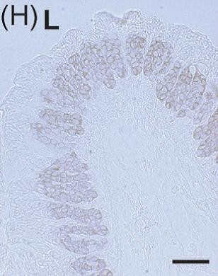 pgc (progastricsin (pepsinogen C)) gene expression in sections of Xenopus laevis stomach, via in situ hybridization, NF stage 57.