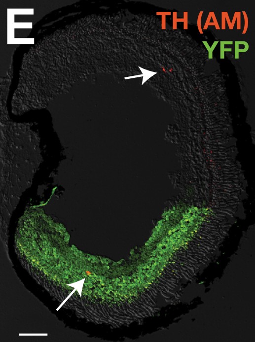 Th Ab1 staining (red channel) in sectioned NF stage 41 Xenopus laevis eye