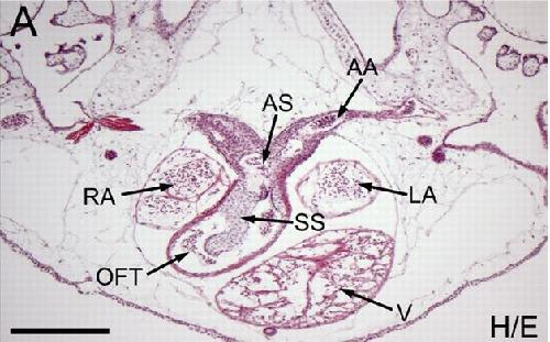 Definition: "A myogenic muscular organ found in the cardiovascular system. It is responsible for pumping blood throughout the blood vessels by repeated, rhythmic contractions. It is composed of cardiac muscle, which is an involuntary striated muscle tissue found only in this organ, and connective tissue. It is ultimately composed of three chambers (two atria and one ventricle), occupying a ventral position within the chest of the mature tadpole/frog."