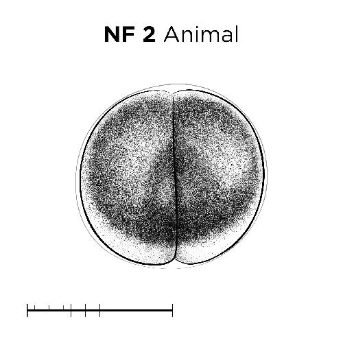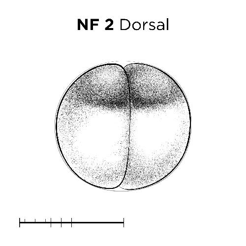 Definition: "Nieuwkoop and Faber stage 2, corresponding to an embryo of age 1 hr 30 min at 22-24 Celsius and having the following external morphological criteria: Advanced two cell stage. First cleavage groove has reached vegetal pole. Ventral side of blastomeres darker than dorsal side. Length: 1.4 - 1.5 mm."