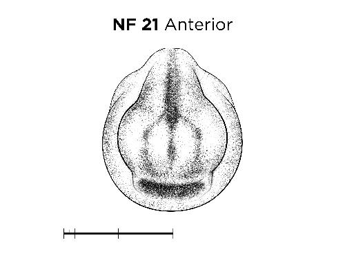 Definition: "Nieuwkoop and Faber stage 21, corresponding to an embryo of age 22 hr 30 min at 22-24 Celsius and having the following external morphological criteria: Suture of neural tube completely closed. Delimitation of frontal field by pigment lines. Primary eye vesicles showing through in the form of two separate, obliquely placed oval spots; beginning of protrusion of eyes. Lateral outline of embryo just becoming concave, ventral outline flat. Length: 1.9 - 2.0 mm."