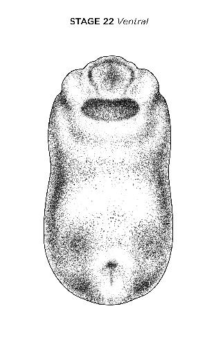 Definition: "Nieuwkoop and Faber stage 22, corresponding to an embryo of age 24 hr at 22-24 Celsius and having the following external morphological criteria: Distinct protrusion of eyes. Initial groove between jaw- and gill-areas only at latero-dorsal side. Lateral and ventral outlines of embryo slightly concave. Anal opening displaced to ventral side. Vitelline membrane becoming wider. Length: 2.0 - 2.2 mm."