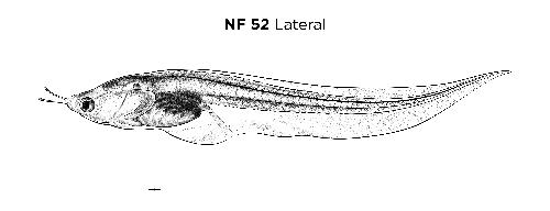 Definition: "Nieuwkoop and Faber stage 52, corresponding to a tadpole of age about 21 days at 22-24 Celsius and having the following external morphological criteria: Forelimb bud irregularly conical. Hindlimb bud showing first indication of ankle constriction and first sign of flattening of foot. Length: 42 - 56 mm."