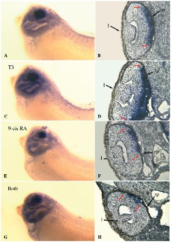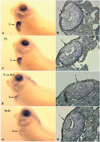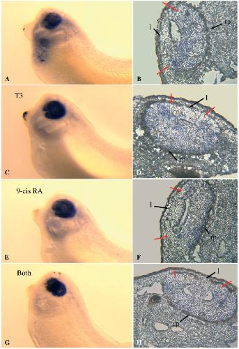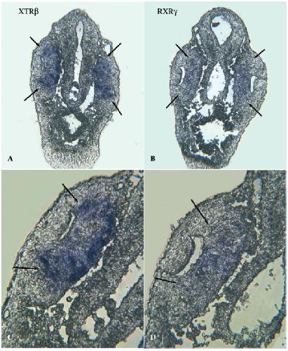 Early expression of thyroid hormone receptor beta and retinoid X receptor gamma in the Xenopus embryo. , Cossette SM, Drysdale TA ., Differentiation. June 1, 2004; 72 (5): 239-49.