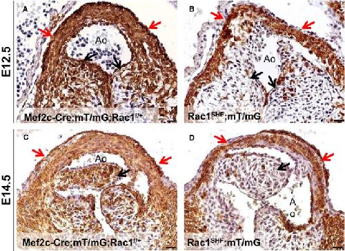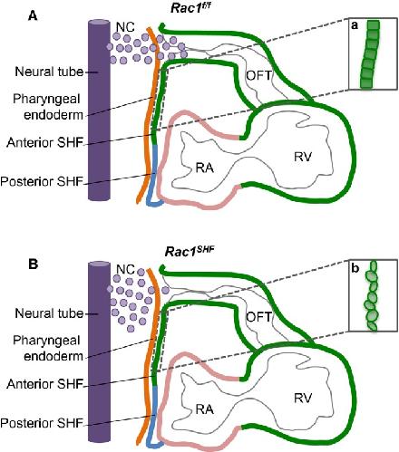 Rac1 Signaling Is Required for Anterior Second Heart Field Cellular Organization and Cardiac Outflow Tract Development. , Leung C, Liu Y , Lu X, Kim M, Drysdale TA , Feng Q., J Am Heart Assoc. December 31, 2015; 5 (1):