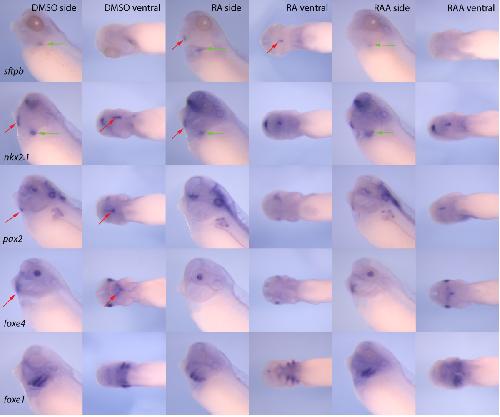 Retinoic acid is a key regulatory switch determining the difference between lung and thyroid fates in Xenopus laevis. , Wang JH , Deimling SJ, D'Alessandro NE, Zhao L, Possmayer F, Drysdale TA ., BMC Dev Biol. January 26, 2011; 11 75.