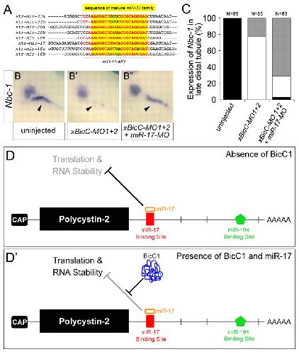 The RNA-binding protein bicaudal C regulates polycystin 2 in the kidney by antagonizing miR-17 activity., Tran U, Zakin L, Schweickert A, Agrawal R, Döger R, Blum M, De Robertis EM, Wessely O., Development. April 1, 2010; 137 (7): 1107-16. |