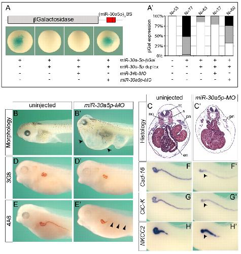 The miR-30 miRNA family regulates Xenopus pronephros development and targets the transcription factor Xlim1/Lhx1., Agrawal R, Tran U, Wessely O., Development. December 1, 2009; 136 (23): 3927-36. |