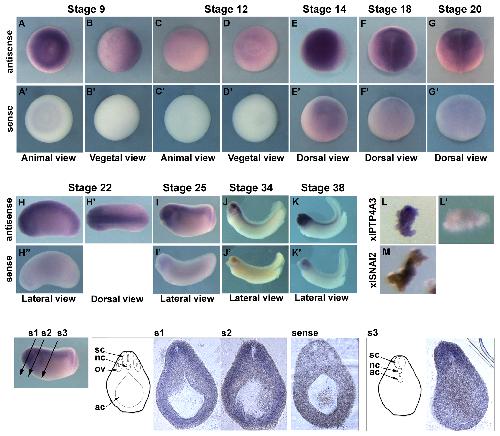 Protein tyrosine phosphatase 4A3 ( PTP4A3) is required for Xenopus laevis cranial neural crest migration in vivo. , Maacha S, Planque N, Laurent C, Pegoraro C, Anezo O, Maczkowiak F, Monsoro-Burq AH , Saule S., PLoS One. December 9, 2013; 8 (12): e84717.