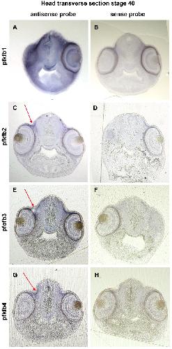 Pfkfb (6-phosphofructo-2-kinase/fructose-2,6-bisphosphatase) isoforms display a tissue-specific and dynamic expression during Xenopus laevis development. , Pegoraro C, Maczkowiak F, Monsoro-Burq AH ., Gene Expr Patterns. October 1, 2013; 13 (7): 203-11.