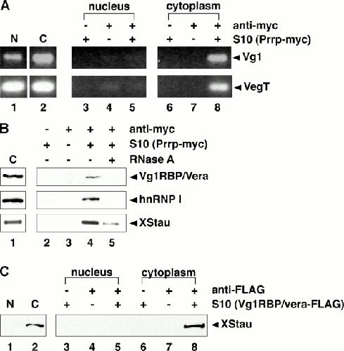 Xenopus Staufen is a component of a ribonucleoprotein complex containing Vg1 RNA and kinesin. , Yoon YJ, Mowry KL ., Development. July 1, 2004; 131 (13): 3035-45.