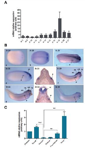 Expression of tenascin mRNA in mesoderm during Xenopus laevis embryogenesis: the potential role of mesoderm patterning in tenascin regionalization. , Umbhauer M , Riou JF , Spring J, Smith JC , Boucaut JC ., Development. September 1, 1992; 116 (1): 147-57.