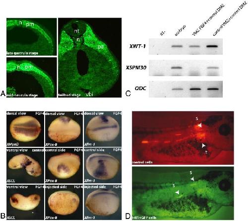 Signaling specificities of fibroblast growth factor receptors in early Xenopus embryo. , Umbhauer M , Penzo-Méndez A, Clavilier L, Boucaut J , Riou J ., J Cell Sci. August 1, 2000; 113 ( Pt 16) 2865-75.