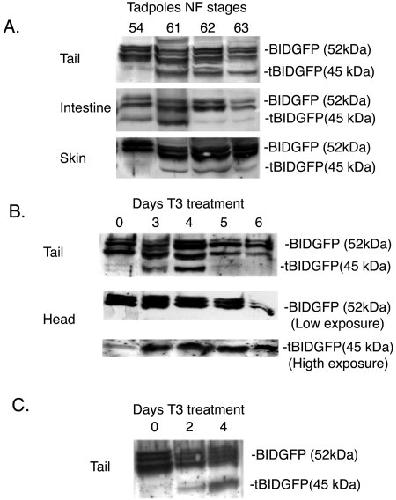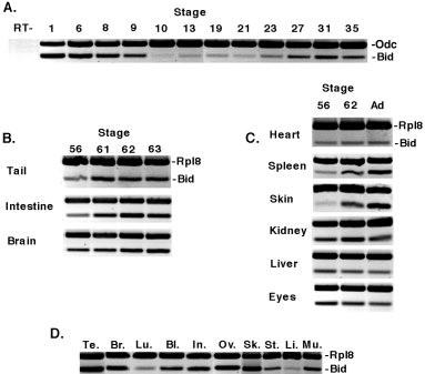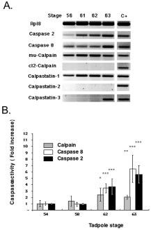 Developmental cell death during Xenopus metamorphosis involves BID cleavage and caspase 2 and 8 activation. , Du Pasquier D, Rincheval V, Sinzelle L, Chesneau A, Ballagny C, Sachs LM , Demeneix B, Mazabraud A ., Dev Dyn. August 1, 2006; 235 (8): 2083-94.