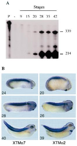 Two skeletal alpha-tropomyosin transcripts with distinct 3'UTR have different temporal and spatial patterns of expression in the striated muscle lineages of Xenopus laevis. , Hardy S , Hamon S, Cooper B, Mohun T, Thiébaud P ., Mech Dev. September 1, 1999; 87 (1-2): 199-202.