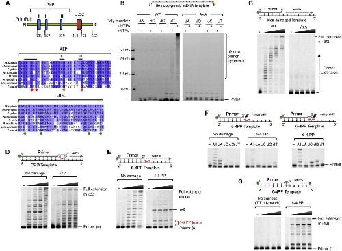PrimPol bypasses UV photoproducts during eukaryotic chromosomal DNA replication. , Bianchi J, Rudd SG, Jozwiakowski SK, Bailey LJ, Soura V, Taylor E, Stevanovic I, Green AJ, Stracker TH, Lindsay HD , Doherty AJ., Mol Cell. November 21, 2013; 52 (4): 566-73.
