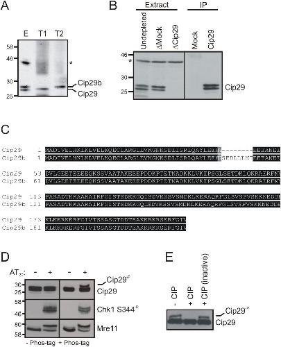 Cip29 is phosphorylated following activation of the DNA damage response in Xenopus egg extracts. , Holden J, Taylor EM, Lindsay HD ., PLoS One. July 10, 2017; 12 (7): e0181131.