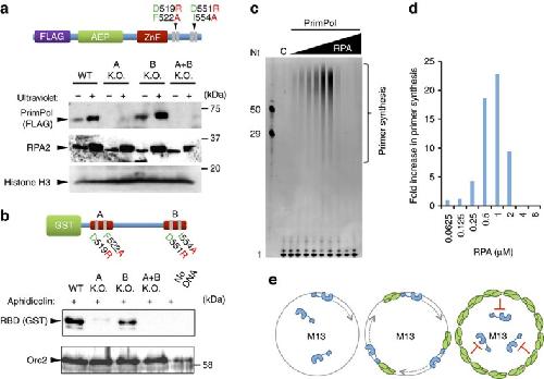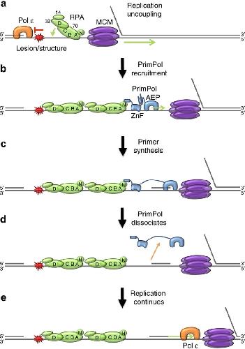 Molecular basis for PrimPol recruitment to replication forks by RPA. , Guilliam TA, Brissett NC, Ehlinger A, Keen BA, Kolesar P, Taylor EM, Bailey LJ, Lindsay HD , Chazin WJ, Doherty AJ., Nat Commun. May 23, 2017; 8 15222.