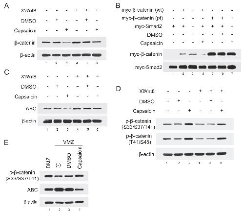 Capsaicin inhibits the Wnt/β-catenin signaling pathway by down-regulating PP2A., Park DS, Yoon GH, Lee HS, Choi SC., Biochem Biophys Res Commun. September 9, 2016; 478 (1): 455-461. |
