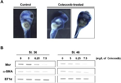Evaluation of the toxic effects of celecoxib on Xenopus embryo development., Yoon YH, Kim JY, Bae YC, Nam SW, Cho HJ, Lee S, Chung HY, Lee HS, Park MJ., Biochem Biophys Res Commun. June 22, 2018; 501 (2): 329-335. |