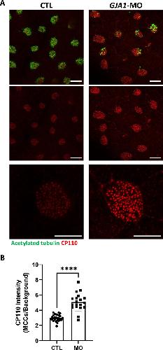 GJA1 depletion causes ciliary defects by affecting Rab11 trafficking to the ciliary base., Jang DG, Kwon KY, Kweon YC, Kim BG, Myung K, Lee HS, Young Park C, Kwon T, Park TJ., Elife. August 25, 2022; 11 |