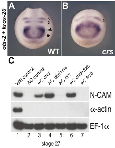 A direct screen for secreted proteins in Xenopus embryos identifies distinct activities for the Wnt antagonists Crescent and Frzb-1. , Pera EM , De Robertis EM ., Mech Dev. September 1, 2000; 96 (2): 183-95.