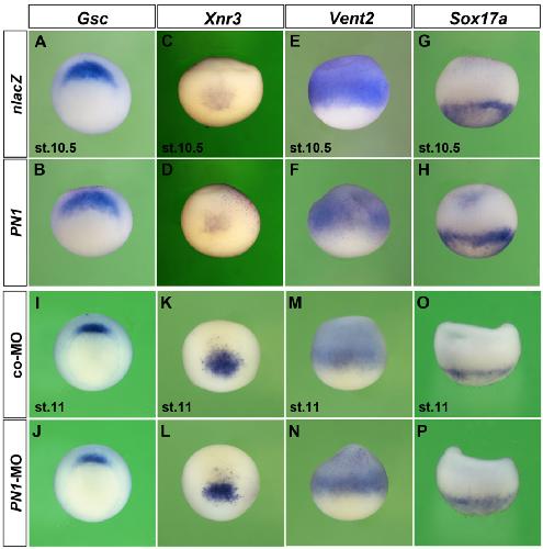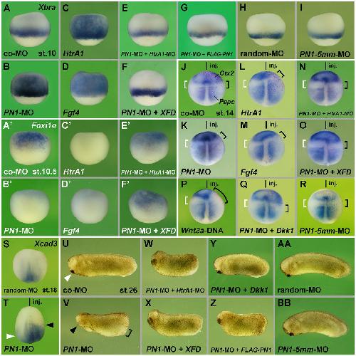 The serpin PN1 is a feedback regulator of FGF signaling in germ layer and primary axis formation. , Acosta H, Iliev D, Grahn TH, Gouignard N , Maccarana M, Griesbach J, Herzmann S, Sagha M, Climent M , Pera EM ., Development. March 15, 2015; 142 (6): 1146-58.