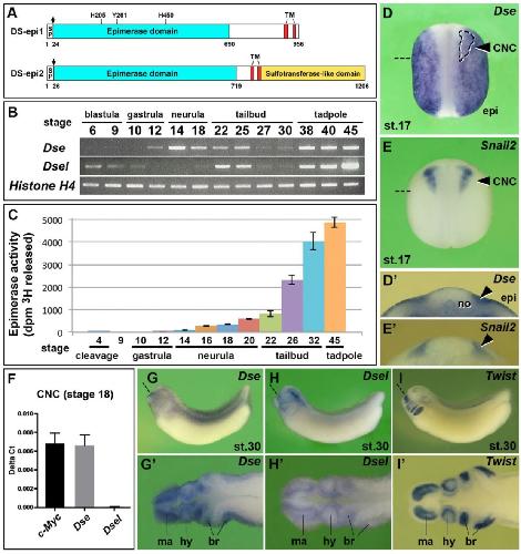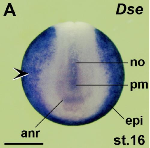Gene expression of the two developmentally regulated dermatan sulfate epimerases in the Xenopus embryo. , Gouignard N , Schön T, Holmgren C, Strate I, Taşöz E, Wetzel F, Maccarana M, Pera EM ., PLoS One. January 18, 2018; 13 (1): e0191751.