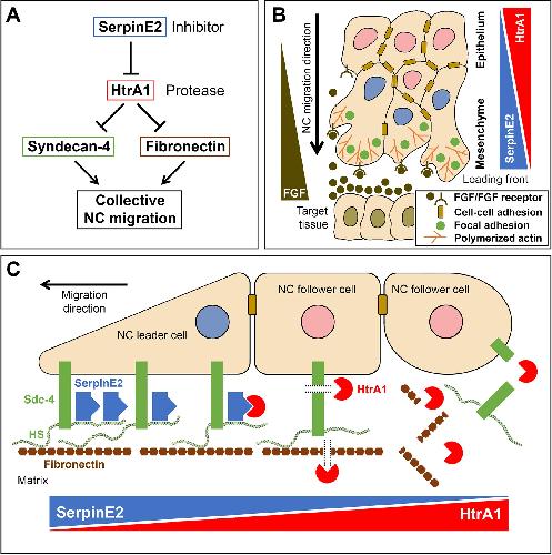 Inhibition of the serine protease HtrA1 by SerpinE2 suggests an extracellular proteolytic pathway in the control of neural crest migration. , Pera EM , Nilsson-De Moura J, Pomeshchik Y, Roybon L, Milas I., Elife. April 18, 2024; 12