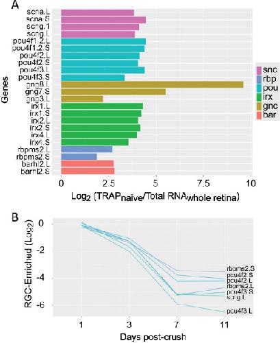 Translational profiling of retinal ganglion cell optic nerve regeneration in Xenopus laevis. , Whitworth GB, Misaghi BC, Rosenthal DM, Mills EA, Heinen DJ, Watson AH, Ives CW, Ali SH, Bezold K , Marsh-Armstrong N , Watson FL ., Dev Biol. June 15, 2017; 426 (2): 360-373.