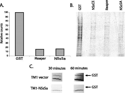 Inhibition of translation and induction of apoptosis by Bunyaviral nonstructural proteins bearing sequence similarity to reaper. , Colón-Ramos DA, Irusta PM, Gan EC, Olson MR, Song J, Morimoto RI, Elliott RM, Lombard M, Hollingsworth R, Hardwick JM, Smith GK, Kornbluth S ., Mol Biol Cell. October 1, 2003; 14 (10): 4162-72.