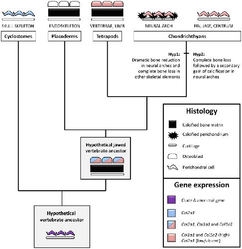 Skeletal Mineralization in Association with Type X Collagen Expression Is an Ancestral Feature for Jawed Vertebrates. , Debiais-Thibaud M, Simion P, Ventéo S, Muñoz D, Marcellini S , Mazan S, Haitina T., Mol Biol Evol. October 1, 2019; 36 (10): 2265-2276.