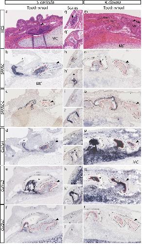Evolution of dental tissue mineralization: an analysis of the jawed vertebrate SPARC and SPARC-L families. , Enault S, Muñoz D, Simion P, Ventéo S, Sire JY, Marcellini S , Debiais-Thibaud M., BMC Evol Biol. August 30, 2018; 18 (1): 127.