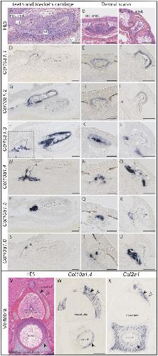 Evolution of the vertebrate bone matrix: an expression analysis of the network forming collagen paralogues in amphibian osteoblasts. , Aldea D, Hanna P, Munoz D, Espinoza J, Torrejon M , Sachs L , Buisine N , Oulion S, Escriva H, Marcellini S ., J Exp Zool B Mol Dev Evol. September 1, 2013; 320 (6): 375-84.