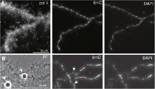 Association of modified cytosines and the methylated DNA-binding protein MeCP2 with distinctive structural domains of lampbrush chromatin. , Morgan GT, Jones P , Bellini M ., Chromosome Res. December 1, 2012; 20 (8): 925-42.